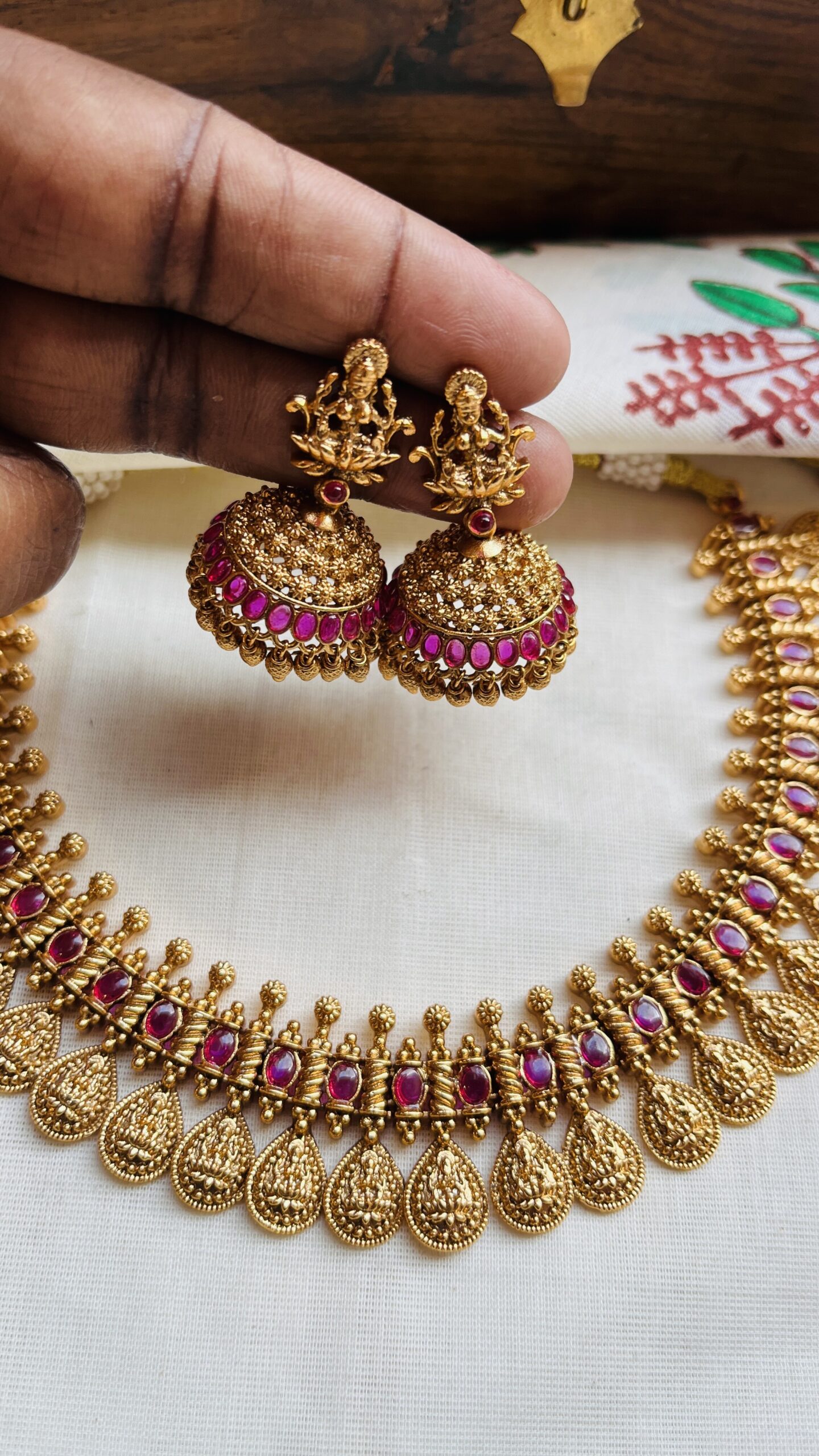 New Model Gold finish Temple Necklace with Matching Jumuka